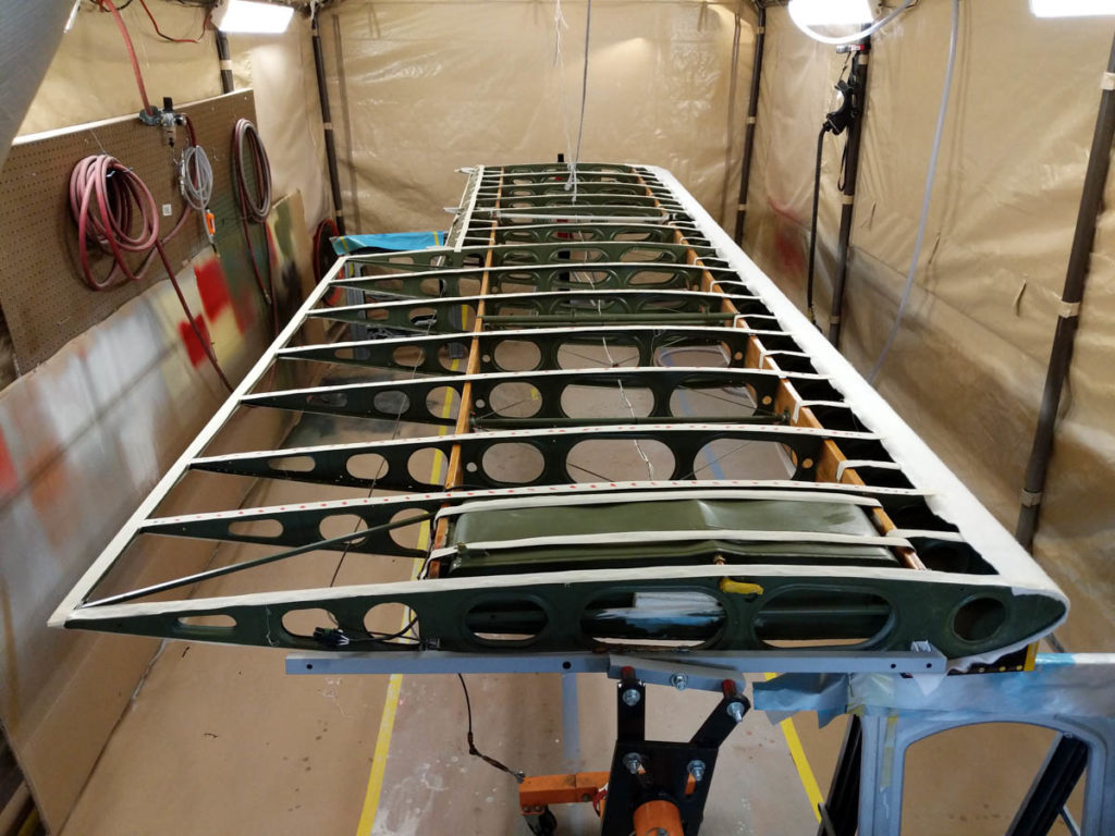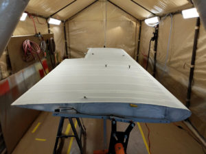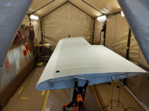 All the preparation work is done, ready to cover the right wing, the wings looks like”The Mummy” with all the anti-chafing tape.