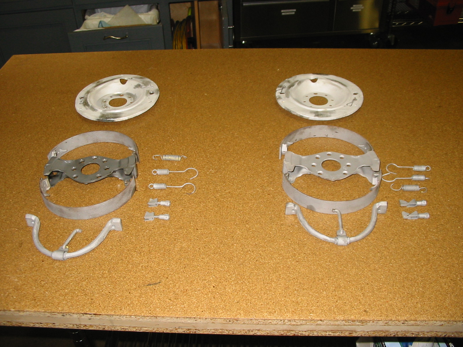 The Shinn Brakes are disassembled, washed and sandblasted. They are ready to be primed and painted. There is a nice description on how to maintain these brakes at: